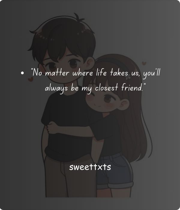 - “No matter where life takes us, you’ll always be my closest friend.”